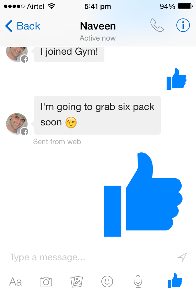 Facebook also packed another cool feature with this update, ”Big Likes“. When you really, really like something you can send bigger thumbs up as replies. You can send ‘big like’ by pressing and holding the “Like” button. But if you hold it for long time, it will blow-up automatically. It’s really a playful feature, the animation and the sounds are great.
